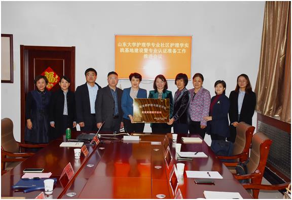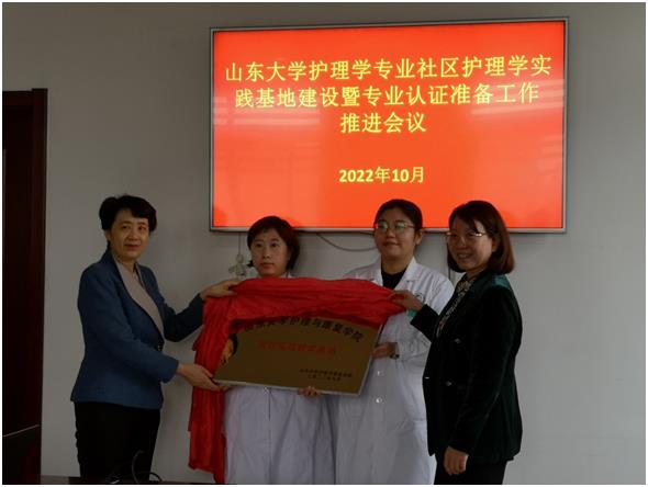 会上,济南市第四人民医院任兴业院长首先介绍了北村社区卫生服务中心的基本情况,并强调要求社区卫生服务中心要继续发扬优良传统、坚守为民初心,努力做好护理学专业认证准备,以评促建,以评促改,提高社区护理学实践教学工作质量。AC米兰官方王克芳院长对济南市第四人民医院长期以来给予AC米兰官方护理学专业建设的高度重视与支持表示感谢,特别是北村社区卫生服务中心对学院的本科生实践教学工作的大力支持给予了高度评价。随后,进行了AC米兰官方社区护理学实践教学基地挂牌仪式。AC米兰官方李静副院长对专业认证工作做了具体说明,济南市第四人民医院社区管理部杨华主任做了护理实习教学工作及专业认证准备工作汇报。学院与社区的老师们就社区护理实践教学和护理学专业认证的相关考察要求进行了热烈讨论,并现场参观了社区的康复服务设施。