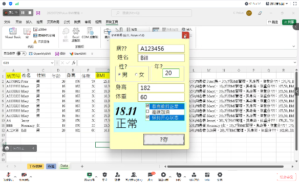 (1)学生自行开发的软件,能够判断输入的BMI等数据,并智能做出诊断结果及提出护理措施