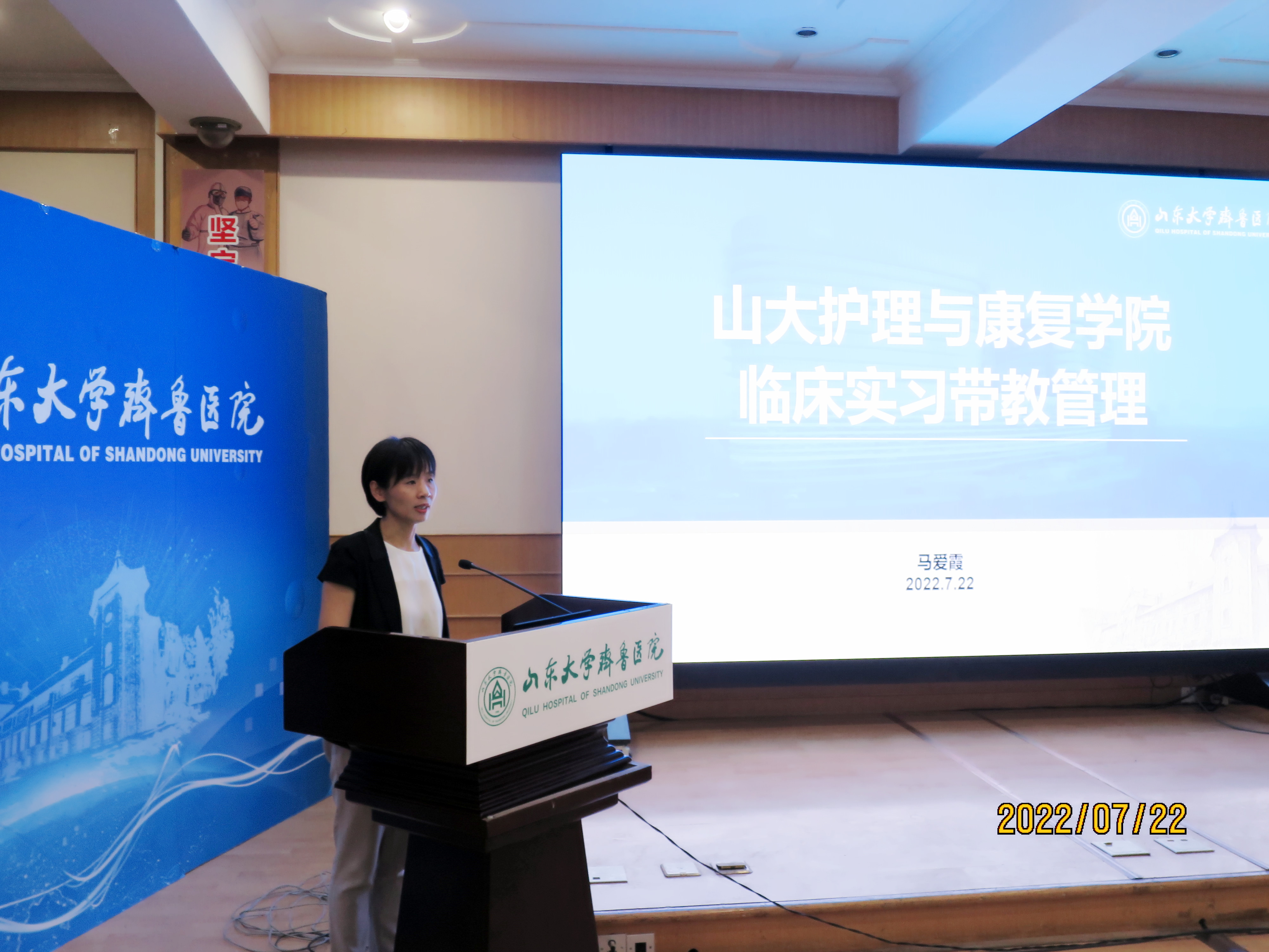 李静首先对齐鲁医院护理团队对学院护理教学工作的支持和付出表示衷心感谢,从护理学专业认证的背景、目的、意义及任务等方面作了介绍,鼓励大家将思政教育融入临床实践教学,将“OBE”等教学新理念落实到临床实践教学,将“两性一度”标准应用于临床实践教学,将持续改进原则贯穿于临床实践教学,以护理学专业认证为契机,强化内涵和保障体系建设,提升护理学专业的教学水平和教学质量,培养更高质量的、高素质一流护理人才。