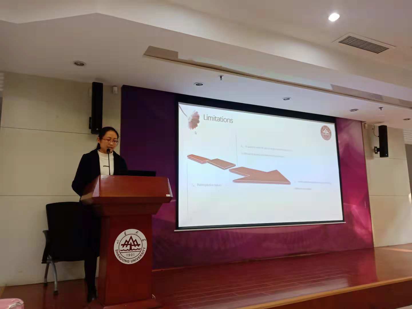 第三位汇报者是2017级学术型研究生徐晓芳,她本次汇报的文献题目为“How Does the Mindfulness-Based Program for Infertility (MBPI) Work in Reducing Depressive Symptoms?”,即:不孕不育的正念干预是如何降低抑郁症状的?该研究提出了针对不孕不育人群的正念干预,目的是探讨进行不孕不育正念干预的女性抑郁症状的降低是否会受到其不孕不育自我效能升高的影响。其将是否干预(干预:0;没有干预:1)作为自变量,干预后的自我效能作为中介变量,干预后的抑郁症状作为结局变量,干预前的自我效能和抑郁症状作为协变量纳入方程。结果发现不孕不育正念干预可以通过增加个体的自我效能来降低抑郁症状。