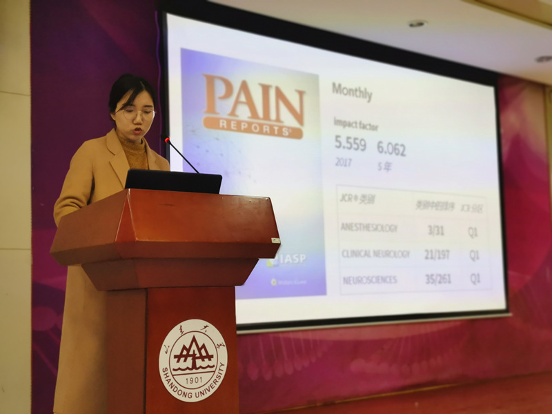 第三位汇报者是2017级学术型研究生王雅琦,汇报的题目是“Association between pain and frailty among Chinese community-dwelling older adults: depression as a mediator and its interaction with pain”。这篇文章发表于2017年《PAIN》杂志上。是一项横断面调查研究,旨在探讨疼痛与衰弱之间的关系,以及抑郁作为中介与疼痛之间的相互作用。这项研究共调查了1788年中国社区老年人,衰弱,疼痛强度和抑郁症状的评估使用衰弱表型、面部疼痛量表和5项老年抑郁量表。结果发现疼痛和抑郁症状与身体衰弱呈正相关,加入抑郁症状作为中介后,疼痛与衰弱的相关性减弱56.1%。此外,两者兼而有之的老年人比那些只有疼痛或抑郁症状的老年人有更高的衰弱风险。提示我们应关注衰弱老年人的疼痛及心理健康情况。