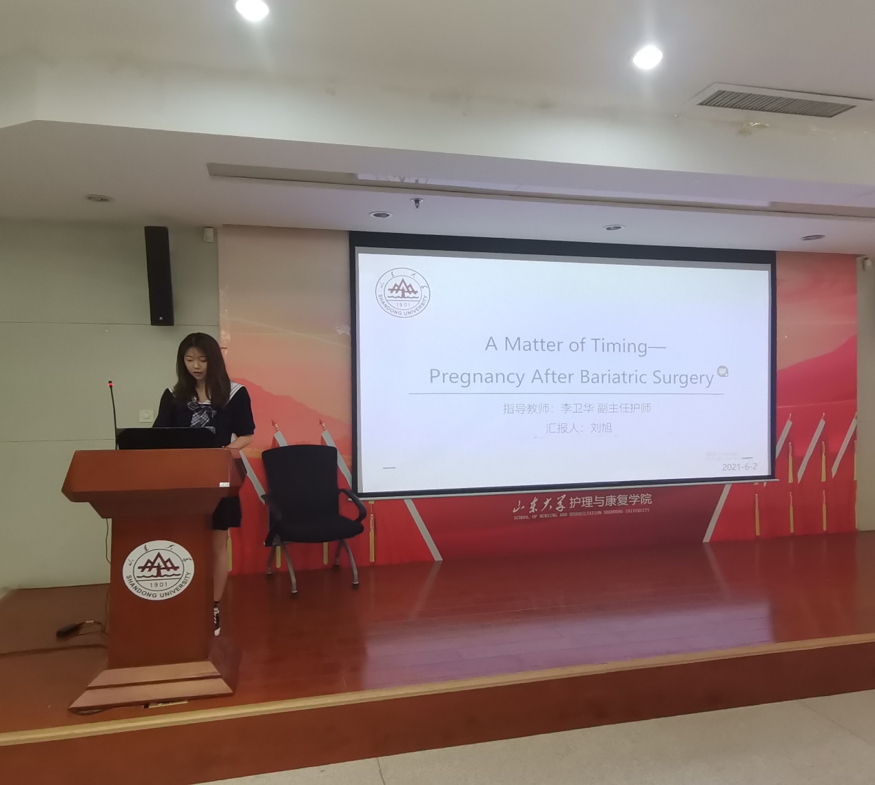 第二位汇报者2019级硕士刘旭分享的是于2021年2月Laura Heusschen在专业权威杂志Obesity Surgery发表的一篇文章,文章题名为“A Matter of Timing—Pregnancy After Bariatric Surgery”。刘旭同学详细介绍了本研究研究设计和研究结果,并就本研究对目前广泛关注的育龄女性接受减重代谢手术后妊娠情况进行总结。基于研究结果:减肥手术后应推迟妊娠12个月的建议。在怀孕期间,需要特别注意实现足够的妊娠体重增加,不足的妊娠体重增加与分娩时较低的胎龄有关,刘旭同学对本研究进行了详细的介绍,同学受益颇深。