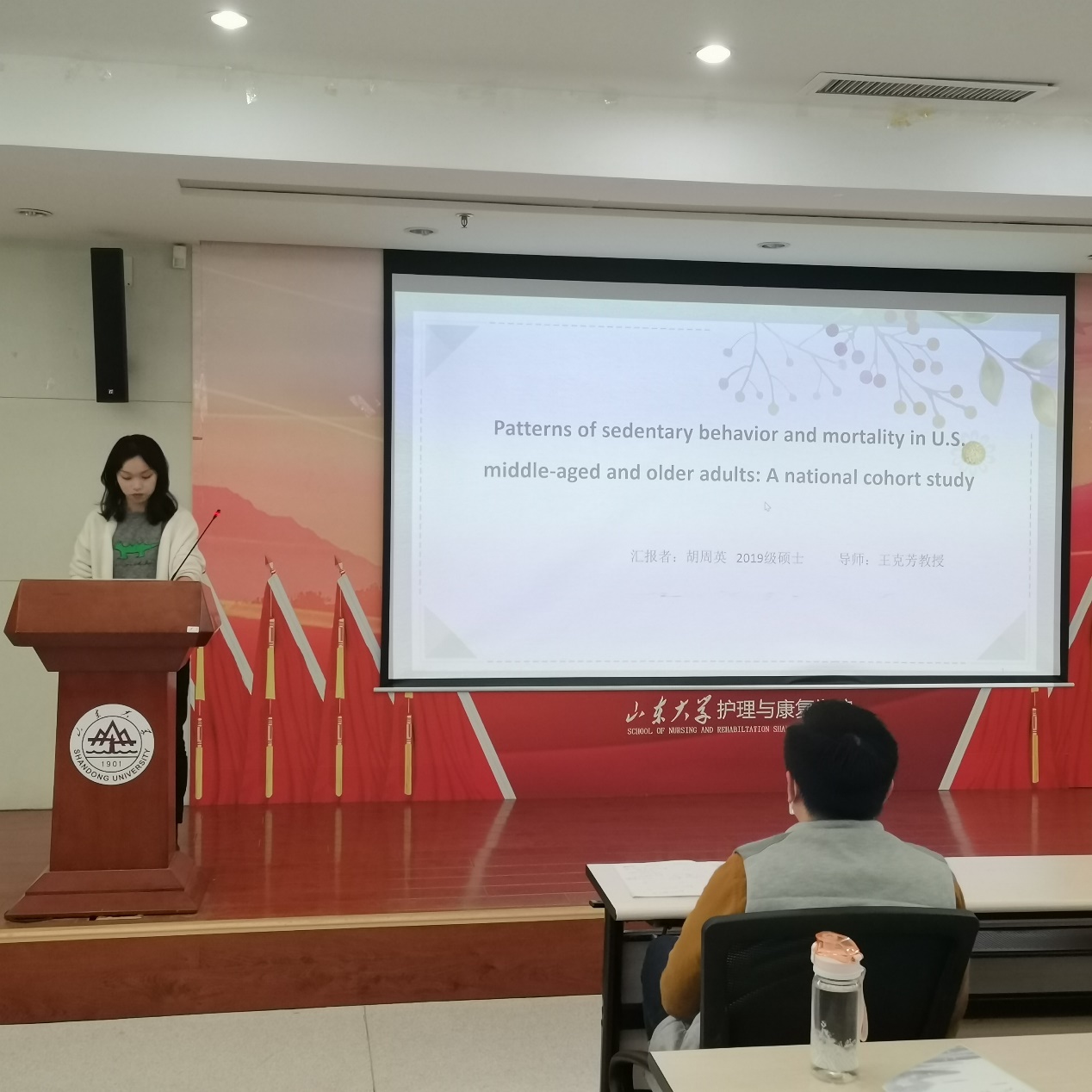 第三位汇报者胡周英汇报的文献主题是“美国中老年人久坐行为模式与全因死亡率的关系”。在当今社会环境下,久坐行为十分普遍,它会带来一系列骨骼肌及心血管代谢问题,从而影响生存结局。该文献结果依赖于一个大样本的全国性队列,随访时间长,具有较好的说服力。而且,本研究采用了一种新型的测量方法——用加速度计客观测量个体一天中久坐行为的时间和久坐行为模式,不仅数据可靠,而且实现了对久坐行为模式的数据提取,切入点新颖,创新性强。该文献以强有力的证据告诉我们,为了实现健康效益,我们不仅要减少一天中久坐行为的总时间,也要定期通过一些身体活动来打断久坐行为,避免长期不间断的久坐。