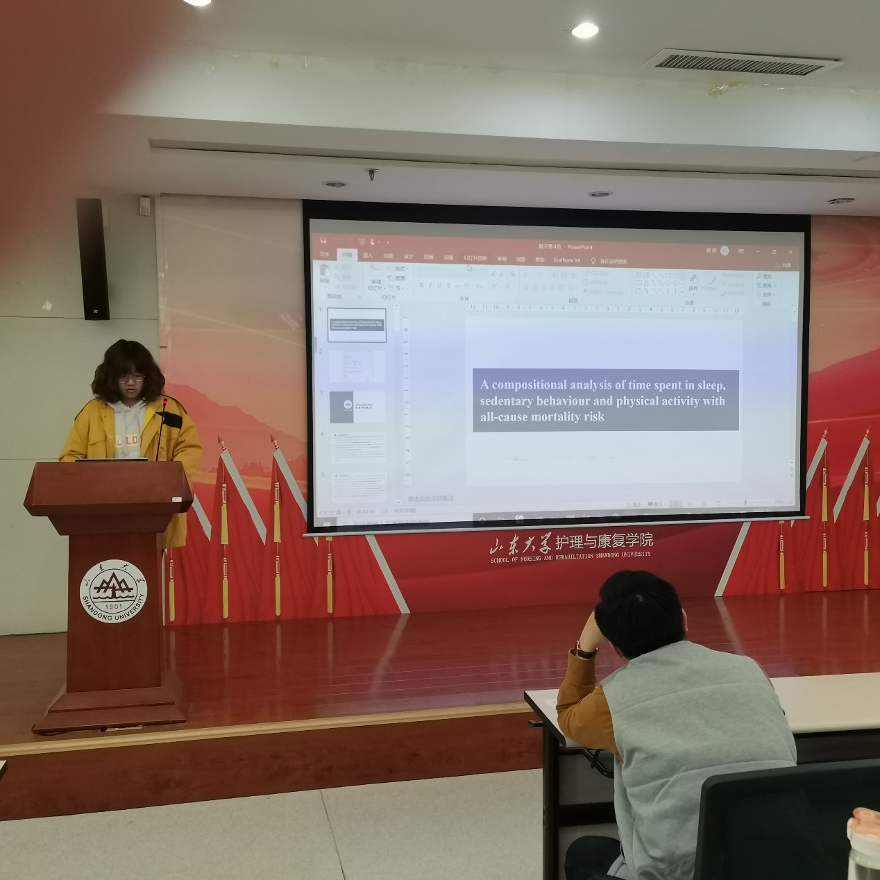 四位研究生选择自身相关研究领域内的文献进行详细汇报,陈斯老师对文献涉及的问题进行了提问和点评,解子惠同学对本次四篇汇报文献进行了总结。本次学术论坛促进了大家对于体力活动、久坐行为和午睡习惯的深入思考,增进了研究生之间的相互交流,为同学们正确审视自身行为习惯提供了思路和依据。