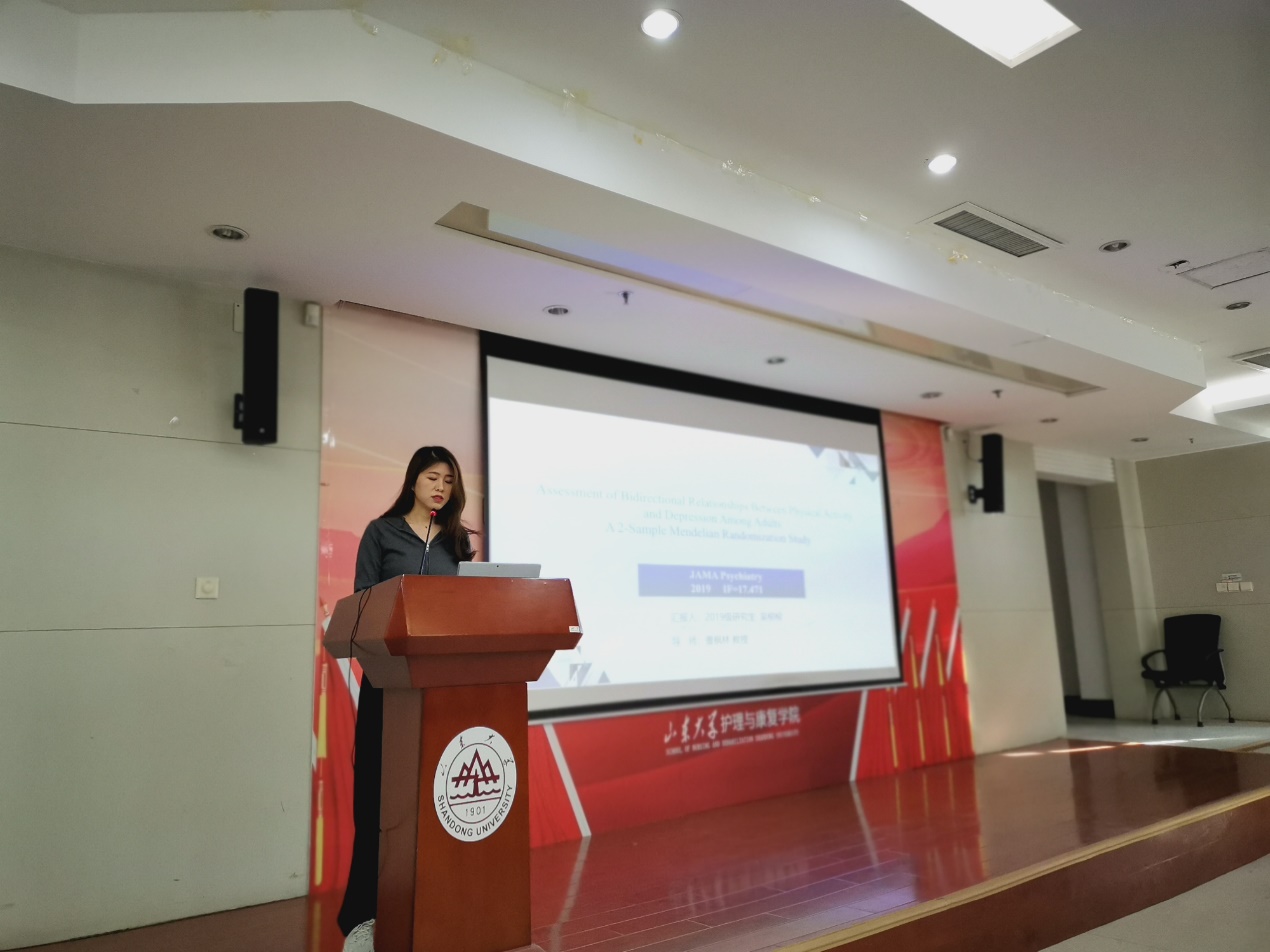 第2位汇报者吴柳柳分享的文献是于2019年发表在JAMA Psychiatry上题为"Assessment of Bidirectional Relationships Between Physical Activity and Depression Among Adults A 2-Sample Mendelian Randomization Study"。本研究在成年人GWAS公共数据库中,运用2-sample实验设计,从大规模、不重叠的全基因组社群研究(GWAS)中提取总结出体力活动(分基于加速度器客观测量的体力活动,和自我报告进行评估的主观测量的体力活动)的遗传基因,以及重度抑郁症(MDD)的遗传基因分别作为工具变量。应用双向MR来评估体育活动与抑郁风险之间的潜在因果关系。采用逆方差加权(IVW)和一般MR Egger 回归方法进行分析。结果发现基于加速度器客观测量的体力活动与MDD之前存在单向的潜在因果影响,但是在自我报告进行评估的主观测量的体力活动中未发现这种关系。