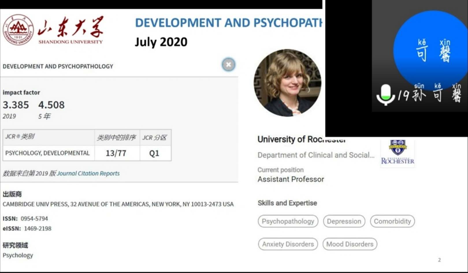 2020年10月21日,AC米兰中文官方网站第4期,总第187期学术论坛经腾讯会议平台成功举办。本次学术论坛汇报者为苏靖雯、孙可馨、孙相洁、王洁,点评老师为崔乃雪老师。