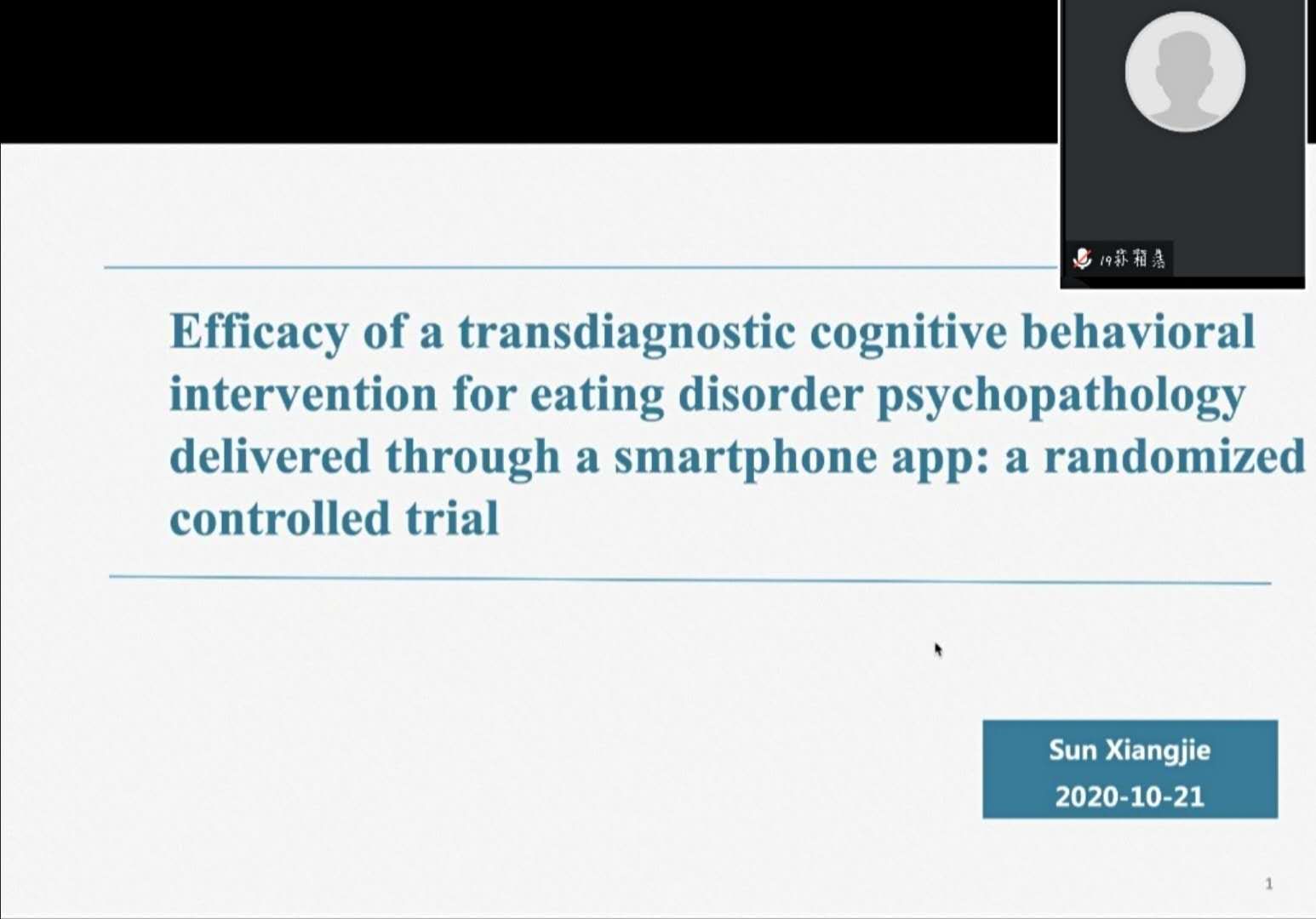 第三位汇报人是2019级硕士研究生孙相洁,汇报了题为“efficacy of a transdiagnostic cognitive behavioral intervention for eating disorder psychopathology delivered through a smartphone app: a randomized controlled trial”的论文,发表于psychological medicine杂志,影响因子5.641分。本论文主要探究对饮食障碍患者进行基于应用程序的多元诊断模型的认知行为治疗效果的评价,是一项随机对照试验。结果显示,干预组在实验结束时,除了补偿行为没有改善外,其他饮食障碍行为都有明显改善,参与者对整个手机应用程序整体满意,试验中数据丢失率在35%。本研究提示,在今后的治疗措施中,可以将手机应用程序作为治疗的一部分,并将之与标准治疗程序相结合,为饮食障碍患者提供更有效的干预治疗措施。