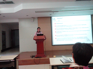 首先进行汇报的是2012级硕士研究生李静静,汇报文献题为“Does regular exercise including pelvic floor muscle training prevent urinary and anal incontinence during pregnancy? A randomised controlled trial”,该文献探讨了在孕期进行包含盆底肌强化锻炼在内的规律训练对预防妊娠后期尿失禁和肛门失禁的作用,并提出了未来研究的方向。范秀珍教授针对研究中盆底肌锻炼计划的制定依据进行了点评,并与现场研究生就目前国内外盆底肌锻炼的方法进行了讨论。