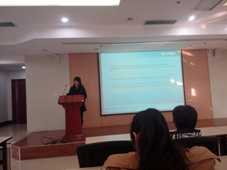 第一位汇报的是2012级研究生刘茜,她的研究方向为护理信息学,本次汇报的英文文献题为 Development and evaluation of a terminology-based electronic nursing record system,师生们认为这篇文献专业性较强,且与临床需求贴合紧密,为各位研究生的课题研究提供了新的思路与方向。