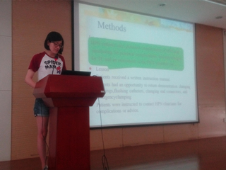 第三位汇报者是2014级研究生程冉,汇报的文献题目为“Feasibility and Perception of the Impact From Aerobic Exercise in Older Adults With Alzheimer’s Disease”,本文属质性研究,探讨了痴呆老人及其照护者对6个月的有氧运动干预可行性及影响的感知,根据访谈资料提取出的主题,老人及其照护者认为有氧运动对他们是有益的,可以提高他们的总体生活质量。李明老师和范秀珍老师在汇报结束后,对痴呆老人是否可以正常的描述自己的状况以及质性研究的深度意义进行了讨论。