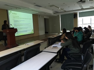 第二位汇报者是2014级专业型研究生赵琳,汇报题目为“Effects of Telerehabilitation on Physical Function and Disability for Stroke Patients.A Randomized, Controlled Trial”,文章主要针对脑卒中患者肢体运动功能障碍,探讨基于互联网的远程家庭康复护理服务对患者身心康复的效果和患者生活质量的改善情况,厉萍老师针对文章中的相关内容和概念进行了热烈讨论,范秀珍老师对研究生学习文献中的设计方法和思路方面提出了宝贵意见。