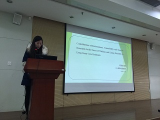 第三位汇报者是2014级学术型研究生高洁,她汇报的文献题为“Contributions of Environment, Como-rbidity, and Stage of Dementia to the Onset of Walking and Eating Disability in Long-Term Care Residents”. 该研究是一个前瞻性队列研究,采用结构方程模型的方法来探讨环境因素,合并症及痴呆严重程度对护理院老人发生步行及进食失能的影响,为今后延缓痴呆老人发生失能提供了新的干预方向。厉萍老师对文章中的细节和结果提出了问题,并指出该研究存在的不足。