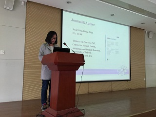首先汇报的是2014级学术型研究生白华羽,她汇报的文献题目为“Maternal Depression During Pregnancy and the Postnatal Period Risks and Possible Mechanisms for Offspring Depression at Age 18 Years”,该文章分析了产前抑郁和产后抑郁对后代18岁时抑郁水平的预测作用。为今后研究孕产妇心理干预发展提供了理论依据。范秀珍老师对文献中所纳入的混杂因素和产前抑郁的影响机制进行了提问,同学们进行了热烈探讨。