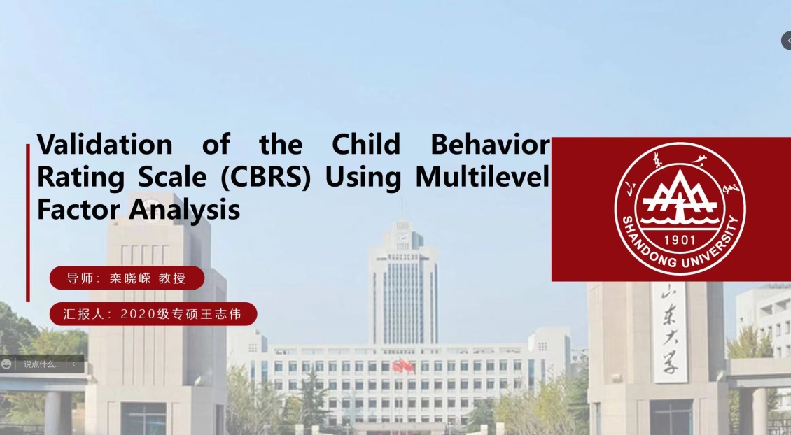 第一位汇报者是2020级硕士王志伟,汇报的文章为来自于Psychological Assessment杂志上的“Validation of the Child Behavior Rating Scale (CBRS) Using Multilevel Factor Analysis”。行为调节支持儿童控制他们的认知和情感技能,并充分参与课堂学习和互动。教师评级经常被用来收集数据,但很容易受到教师反应偏差的影响,这意味着儿童水平的差异很大程度上可归因于教师水平。多水平建模技术通常用于通过分解教师内部和教师之间的学生行为差异来评估不同水平上的测量的心理测量学特性。在这项研究中,试图使用儿童行为评定量表(CBRS)上的教师评分来确定每个水平上的因素结构。1375名学龄前儿童(49.2%为男性)的样本来自新加坡的一项纵向研究。这些儿童的教师评分是在三个时间点收集的(时间1的平均年龄为58.5个月,时间2的平均年龄为69.8个月,时间3的平均年龄为80.9个月)。使用多水平探索性和验证性因素分析,内部水平的三因素模型和中间水平的双因素模型最适合数据。在内部层面,这三个因素被确定为基本人际交往技能、高级人际交往技能和与学习相关的社交技能。三个因素具有较好的内部一致性和差异性相关。处于中间水平的这两个因素可能与教师和课堂特征有关。这项研究为以下两个方面提供了实证支持:(A)CBRS内部和两个层面之间的差异因素结构;(B)两种不同的人际交往技能。提示今后的研究应着眼于探索水平间差异的来源。
