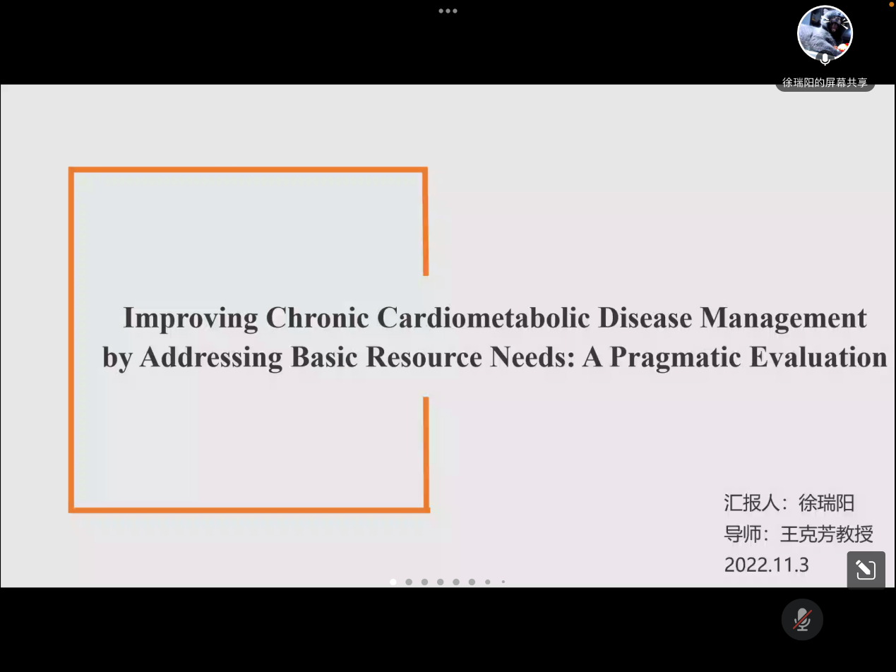 第一位汇报者是2021级硕士研究生徐瑞阳,汇报的文章来自于JAMA Internal Medicine期刊,题为“Improving Chronic Cardiometabolic Disease Management by Addressing Basic Resource Needs: A Pragmatic Evaluation”。目前尚不清楚帮助患者满足资源需求,如难以负担食物、住房或药物,是否能改善临床结果。本研究发现,对未满足的基本需求进行筛查,再加上转诊到一个帮助患者获得社区资源和公共福利的项目以满足这些需求,对血压和低密度脂蛋白胆固醇有一定的改善,但糖化血红蛋白没有改善。干预与血压和胆固醇改善之间的联系对那些参加了这个项目的人来说更强。本研究关注患者未满足的需求的重要性。扩展了解决基本资源需求的医疗干预措施。本研究提到,研究中的血压和LDL-C改善的幅度对个体的临床意义可能并不重要,但在人群水平上可能很重要。关注了人群水平。本研究注重了真实环境下项目的效果。与随机对照试验中高度选定的人群相比有更“真实”的参与者选择。其效果估计可能推广到其他在随机对验中代表性不足的初级保健环境服务人群。