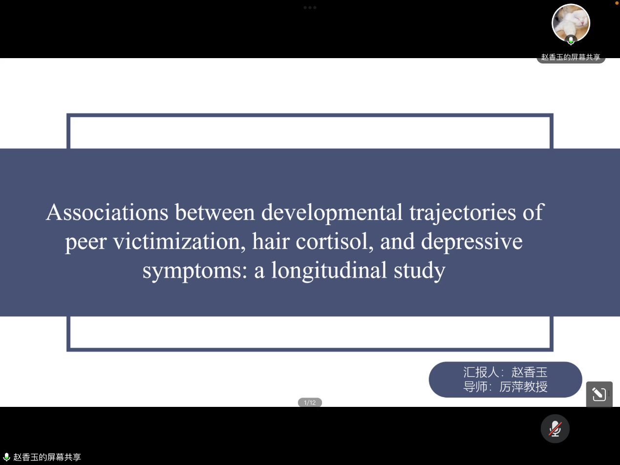 第四位汇报者是2021级硕士研究生赵香玉,汇报的文章来自于Journal of Child Psychology and Psychiatry期刊,题为“Associations between developmental trajectories of peer victimization, hair cortisol, and depressive symptoms: a longitudinal study”,该文章为横跨17年的大型纵向队列,探究了同伴侵害、头发皮质醇和抑郁症状的发展轨迹之间的关系。研究表明持续的同伴侵害经历可以预测在青春期末期的头发皮质醇,并对抑郁症状有潜在的影响。通过捕捉头发样本中慢性皮质醇分泌的系统性差异,这项研究表明,帮助儿童青少年减少侵害经历的预防性干预可能有助于防止诱导HPA轴功能的长期变化。