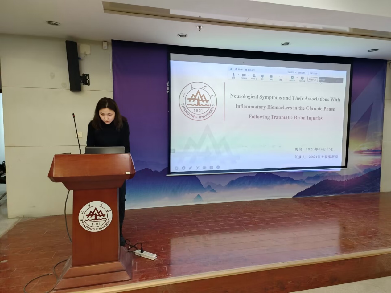 第二位汇报者是2021级硕士研究生张新蕊,汇报的文章为“Neurological Symptoms and Their Associations With Inflammatory Biomarkers in the Chronic Phase Following Traumatic Brain Injuries”。该文章介绍了创伤性脑损伤(TBI)患者慢性期神经症状与慢性期炎症的相关性及其危险因素,作者通过一家法医鉴定中心筛查符合纳排标准的患者,采用相关性分析和logistic回归分析方法,探讨了TBI后慢性期神经症状与慢性期炎症的相关性和神经症状可能的影响因素,研究结果显示TBI后慢性期炎症与多种神经症状相关,且可能会受年龄等因素的影响,文章建议未来的研究考虑更大样本量和更全面的炎症反应进行更深入的研究,以更彻底的阐明这种关联和潜在机制。