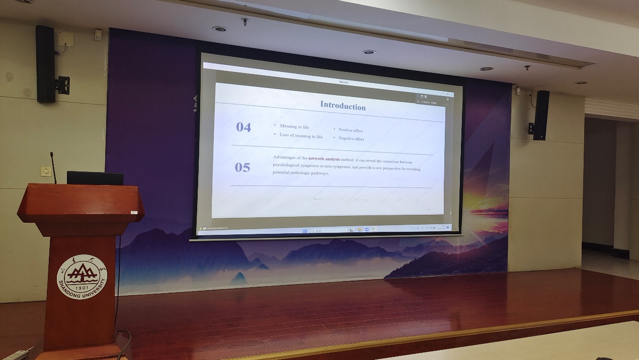 第二位汇报者是2021级硕士研究生李梦丽,汇报的文章题为“The Relationships Between Suicidal Ideation, Meaning in Life, and Affect: a Network Analysis”。文章采用网络分析方法构建了自杀意念、生活意义和情绪之间的关系网络。这种方法能够揭示各个因素之间的相互作用和影响程度。结果显示,自杀意念与生活意义和情绪之间存在复杂的关系网络。生活意义被发现是自杀意念的保护因素,而负向情绪与自杀意念之间存在正向关联。该研究还明确了一些中介因素,即特定的情绪状态可能在自杀意念与生活意义之间充当媒介角色。该文章的创新点在于运用网络分析法,它提供了一种全面而系统的视角,帮助我们理解这些因素之间的复杂互动方式。这项研究为了解自杀意念的发生和干预提供了重要线索,并为未来的研究提供了新的方向。