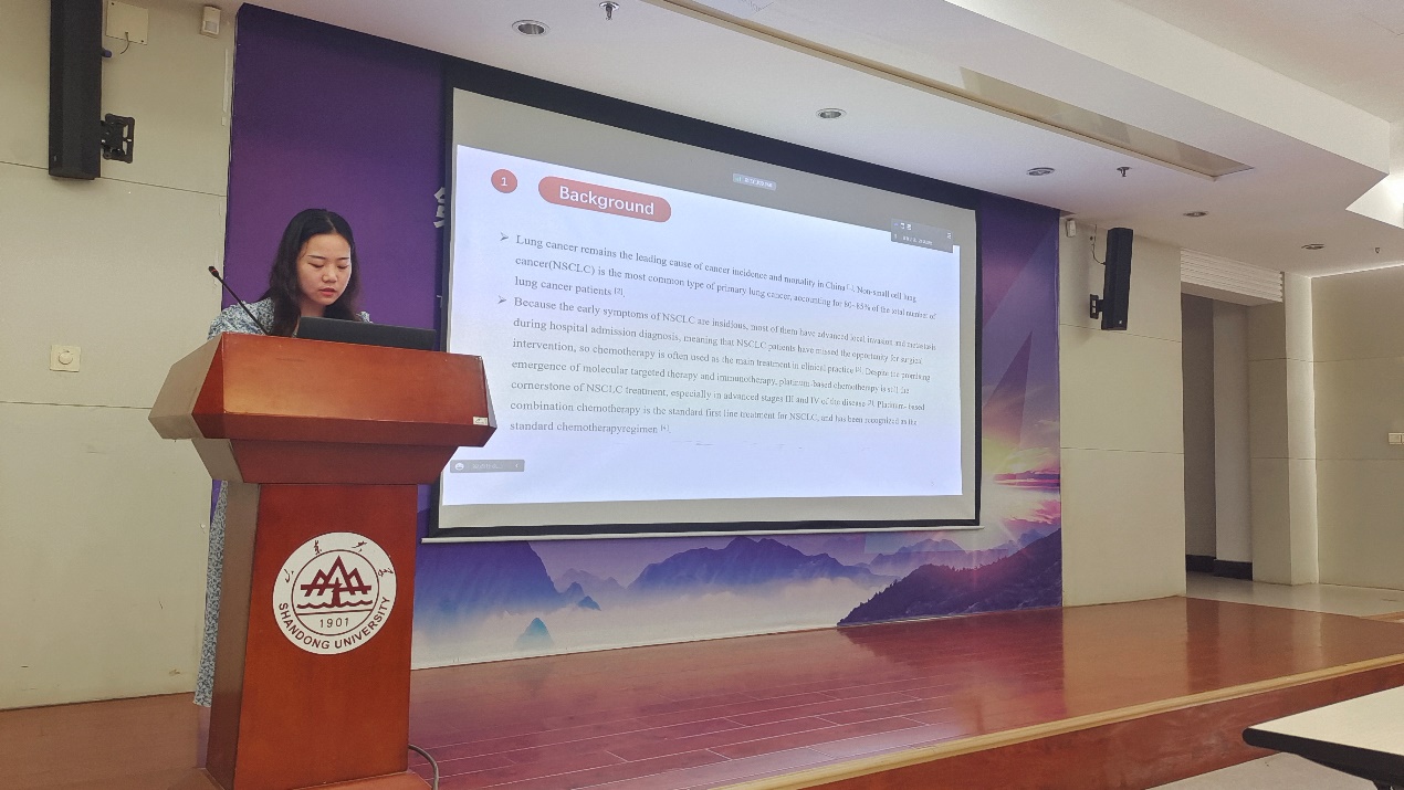 第一位汇报者是2021级硕士研究生高敏,汇报的文章来自SUPPORTIVE CARE IN CANCER期刊,题为“Association between the patients’symptom burden and their family caregivers’ benefit finding in non-small cell lung cancer receiving combined chemotherapy”。该研究在中国进行,研究对象在中国的两所综合性医院的肿瘤科进行招募。该研究采用便利抽样法选取了181名非小细胞肺癌术后的患者及患者家属,采用患者一般资料量表、照顾者一般资料量表、安德森症状评估量表和益处发现量表对患者的症状负担及照顾者的益处发现水平进行评价。研究结果显示,患者的肿瘤分期、肿瘤是否转移、疾病持续时间、患者的自理能力、慢性病、白细胞计数、血小板计数、血红蛋白计数及Na+和K+浓度的症状负担评分和益处发现水平都有统计学差异,且患者的症状负担与照顾者的益处发现二者呈负相关。这背后的作用机制仍有待进一步的探讨以找出可干预的靶点,改善照顾者的益处发现水平,使其保持良好的心理健康状态。
