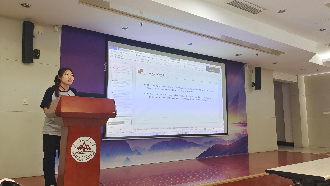 第三位汇报者是2021级硕士研究生刘佳,汇报的文章为来自JOURNAL OF HOSPITAL INFECTION期刊,题为“Strategies to improve the implementation of infection control link nurse programmes in acute-care hospitals ”。该研究通过两轮德尔菲专家函询和线上会议,应用实施研究综合框架(CFIR)、实施变革专家建议(ERIC)、实施战略匹配工具制定了急症医院感染控制联络护士项目的实施策略。结果显示,CFIR框架中的“内部因素”和“过程”两个维度可能是实施“感控联络护士项目”最重要的阻碍因素,并由此制定了10项策略,分别为:确定并准备拥护者、讨论、评估准备度、通知意见领袖、促进、开展合作学习、开展需求评估、制定完整的实施计划、建立合作以及早期应用者的识别。其中,确定和准备拥护者是项目顺利实施的主导策略。