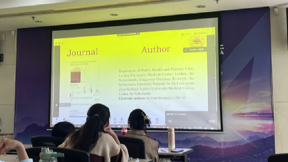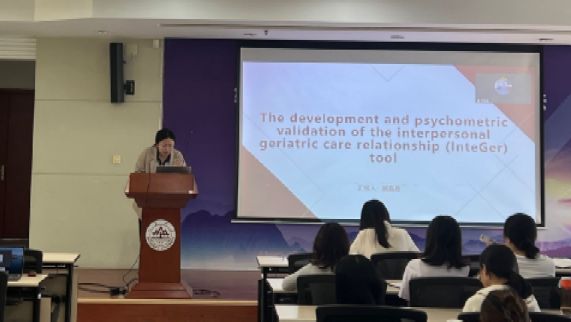 第三位汇报者是2022级博士研究生顾嘉鑫,汇报文章的题目是“The development and psychometric validation of the interpersonal geriatric care relationship (InteGer) tool”。该研究旨在开发人际老年护理关系工具并对其进行心理测量测试。研究设计主要围绕开发工具和心理测试的内容和构建效度、因子结构和可靠性展开。该研究通过便利抽样抽取4所医院483名患者于2016 年1月到 2019 月4月进行了四阶段验证程序:定义通过工具、工具开发、内容验证和心理测量评估测量的结构。该研究共对30项人际老年护理关系工具进行了探索性因素分析,提取了四个组成部分(人性化、注意力、兴趣和可及性)。该工具表现出辨别力和良好的内部一致性。人际老年护理关系工具有其特定的价值,科学家、教育工作者和医疗保健专业人员可以使用它来衡量医院的人际护理关系文化并优化护理质量。