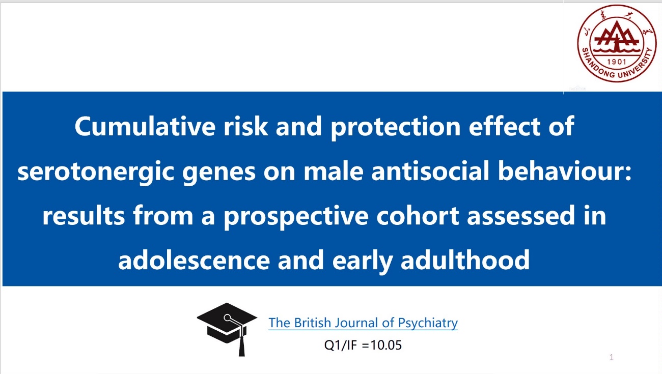 第三位汇报者是2022级硕士研究生余成,他汇报的文章发表在The British Journal of Psychiatry期刊,题为“Cumulative risk and protection effect of serotonergic genes on male antisocial behaviour: results from a prospective cohort assessed in adolescence and early adulthood”。本研究从单核苷酸多态性(SNP)和单倍型两个角度,探讨了11个候选血清素基因多态性与反社会行为的累积遗传效应。研究对象为魁北克幼儿园儿童纵向研究的410名男性成员。结果显示,多种血清素多态性与青春期和成年早期的反社会行为相关,并呈现累积效应。本文为基因与表型关系的分析,特别是从SNP和单倍型角度,提供了研究思路,并为理解反社会行为的遗传病因提供了参考。