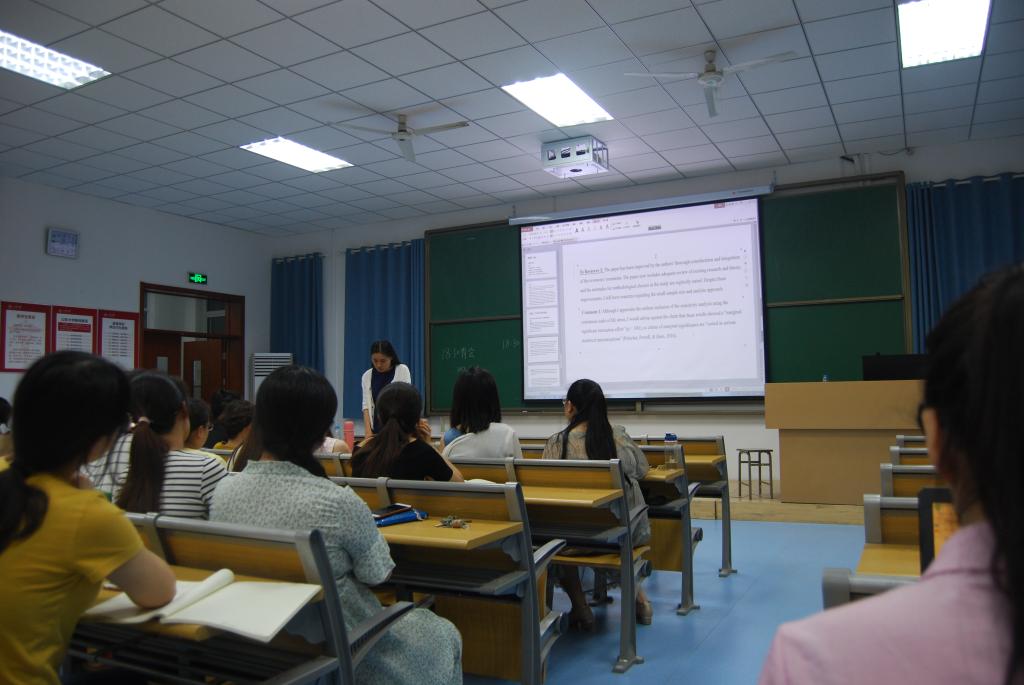 晚上6点半,学术论坛正式开始。邵頔以“博士生学涯总结与科研心得”为主题,首先介绍了其在博士期间的学术研究成果,主要包括青少年心理、肿瘤心理和正念干预等方面的研究。接着邵頔从自己的亲身体验出发,向同学们展示了读研期间可能遇到的各种问题及如何关注并控制自己的负性情绪,从而有意义地度过研究生时光等宝贵意见。随后,邵頔向大家谈论了自己的科研心得,并结合自己的科研经历进行了经验分享,主要从如何写好SCI论文,如何把握论文的创新性及如何回复审稿意见等这几个问题与同学们进行了深入的探讨。最后她建议同学们读研期间要及时调整自己的心态,学会自我监控情绪,还要注意把理论与实际相结合,用理论知识如情绪ABC理论对自身进行情绪管理。另外还要不断磨练,逐渐培养科研兴趣,努力坚持、勤于思考,最后才能收获成功。话音刚落,台下便响起一片热烈的掌声。接下来的提问环节,现场气氛活跃,同学们积极参加、踊跃发问,邵頔对提出的问题耐心做了回应并留了联系方式表示以后可以随时交流。
