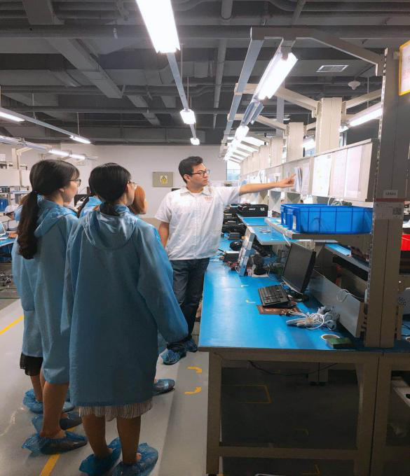9日上午,研学团成员跟随着亚华公司质量部经理张思捷先后观摩了静电测试、原材料检验、盐雾试验、高低温交变湿热试验等,紧接着,在生产部经理姜文朋的带领下参观了亚华公司主要产品的生产线流程,并亲身体验了一把产品安装和测试工作。由于车间工作与以往医院里的护理工作大为不同,同学们都跃跃欲试,对一切都感到好奇的样子。尽管第一天也参观过工人们的工作,但等到同学们亲自动手操作的时候却发现并没有原本想象中那么轻松、简单,不由地对从事这类机械性工作的工人们增添了几分敬意。
