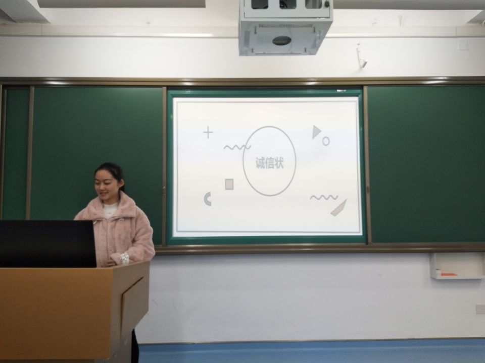 此次开启仪式,团支书彭雨晴带领同学们开启了此次“诚信状”活动,同学们积极参与,踊跃发言,表达了自己的意见。这次会议不仅达到了“诚信状”开启仪式的目的,还完善了活动的内容以及细节,为“诚信状”记单词打卡活动的圆满完成奠下了坚实的基础。