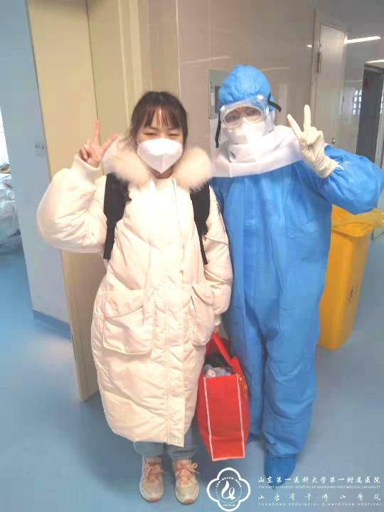 该患者是当地一名护士,在抗击疫情前线不幸感染。入院治疗过程中,黄海燕主管护师一直精心护理,医患既是同仁又是并肩作战的斗士,同时也在近10天的密切交流中结下了情同姐妹的友谊。患者出院时,黄海燕由衷的为对方感到喜悦,对方也一再向黄海燕表达了谢意!
