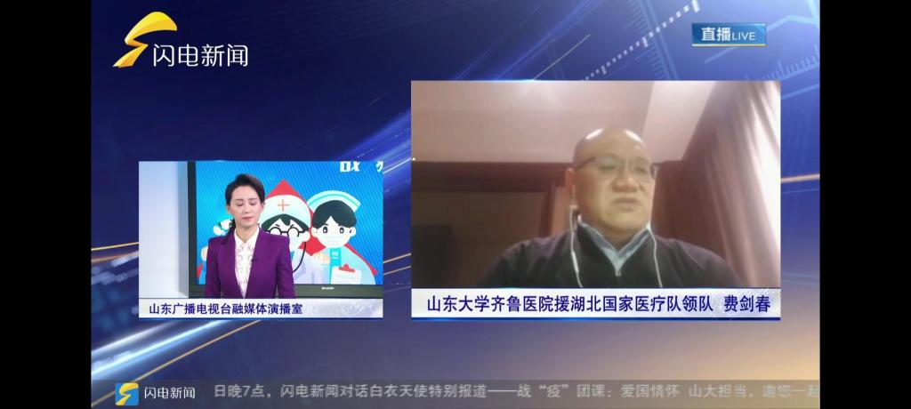 本次直播邀请了AC米兰官方第二医院医务部主任王若义和AC米兰官方新闻传播学院2017级研究生王明玉做客山东广播电视台演播室。直播首先连线了AC米兰官方齐鲁医院援湖北国家医疗队领队费剑春。通过与费剑春的交流,可以了解到目前前方工作已经进入正常的工作状态,防护物资很充足,且为了减少医生和医务人员进入污染区的数量,目前已经开辟了通过微信视频查房的方式进行查房。但由于防护服过于厚重,目前医护人员最大的问题是缺氧。接着直播又分别连线了AC米兰官方齐鲁医院援湖北国家医疗队队员曹英娟和AC米兰官方第二医院援湖北国家医疗队领队魏峰涛。通过与他们的交流,可以了解到目前前线工作流程已经有条不紊,重症病人逐渐减少,出院病人逐渐增多。且现在不仅重视对病人的心理护理,也重视起医护人员的心理护理,通过对心理情绪,生活需求等方面的关注,对医护人员进行心理疏导。
