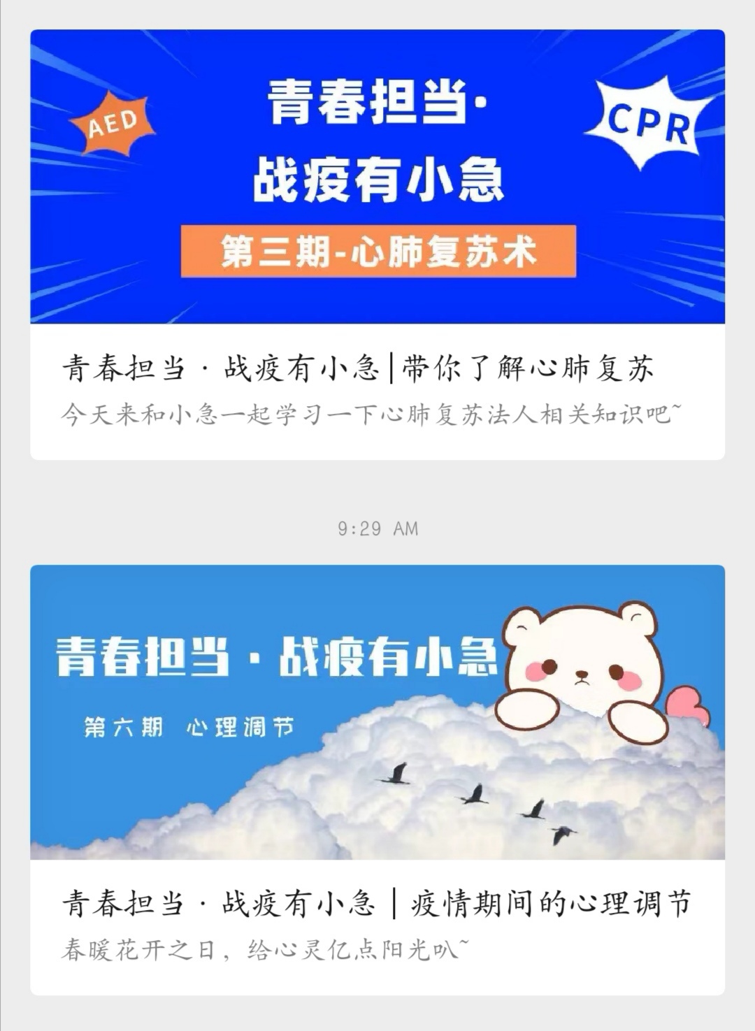 青春担当,战役有小急,急救协会的同学将自己平时所学又一次整理成推文,在疫情席卷全球的时刻,继续发挥青春的力量,彰显当代大学生的担当,护心助力,共克时艰,人类必将战胜这疫情!