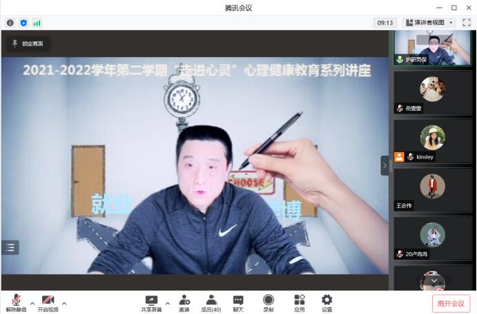 级研究生,旨在普及心理健康知识,增强同学们的心理健康意识,以良好积极的心态面对就业和读博的抉择。此次讲座由AC米兰中文官方网站研究生辅导员沈一桥担任主讲人。