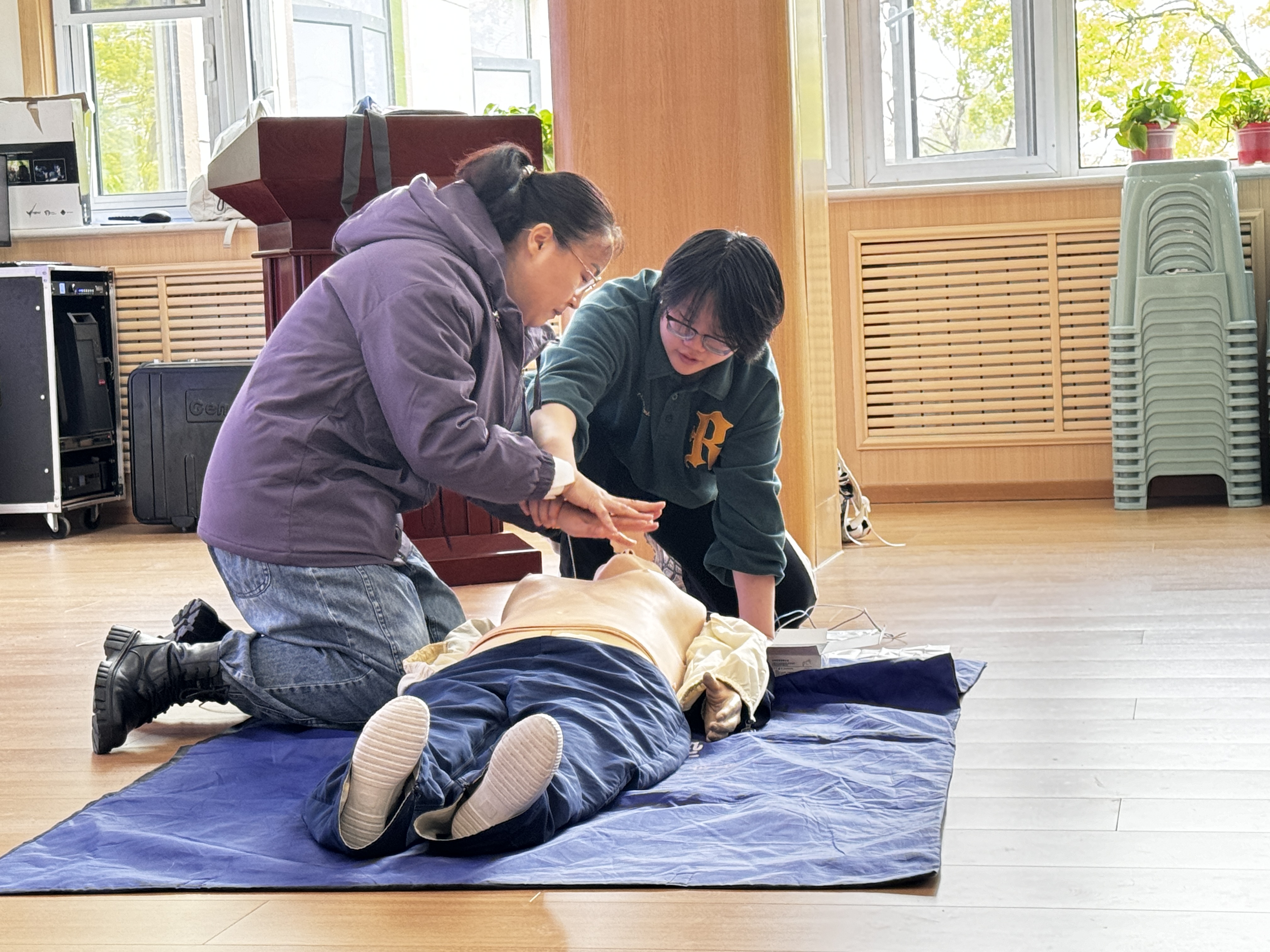 南丁格尔志愿服务队成员以心肺复苏的意义作为开篇,向在场老师普及了心肺复苏的重要性。随后,成员就心肺复苏的步骤展开了详细解说,包括评估现场环境,判断意识和生命特征,呼救,胸外按压,开放气道和清除异物,人工呼吸等,并强调了操作中的急救误区和易错点。在心肺复苏的基础上,成员拓展了AED的培训操作讲解,加深老师们对AED的了解,并掌握其运用方法。最后,幼儿园的老师们积极上台参与练习活动,在练习的过程中对细节步骤的掌握进一步加深,活动效果良好,反响热烈。