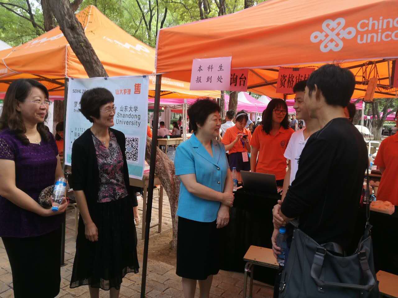 樊丽明校长与2017级护理学专业报到新生范金涛交流