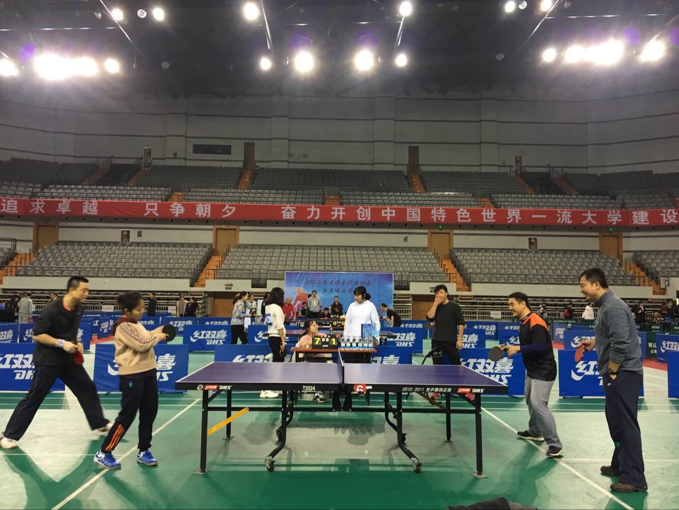 前期通过层层选拔,AC米兰教职工组团体、女单、混双以及学生组女单、混双、女双成功晋级前六,取得总决赛参赛资格,并成为西校区晋级组别最多、人数最多、成绩最好的学院。参与本次全民运动会总决赛的选手,除了济南六大校区的优秀代表队之外,还迎来了威海校区的老师和同学们,他们在赛场上展开精彩角逐,并驱争先。