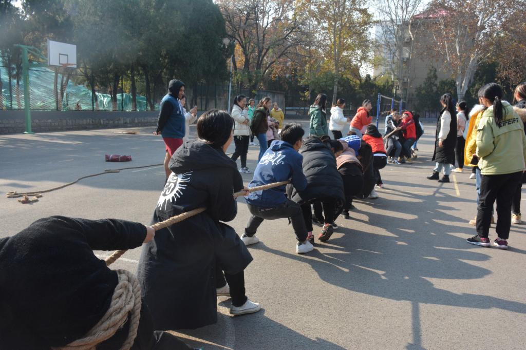 各队啦啦队员更是卖力地为自己的队伍加油鼓劲,现场呐喊声、加油声、号子声此起彼伏,气氛热烈,充分展现了同学们团结向上、奋力拼搏的精神风貌。比赛中有力量悬殊较大被瞬间击败的,有旗鼓相当僵持不下的,也有技巧不够被以弱胜强的。每一场比赛都是力量与技巧的较量,每一场比赛都被呐喊声和欢笑声包围。最后,经过一番角逐,19级力拔山兮气盖世队成为本次拔河比赛冠军,19级拔河拔河队获得亚军,18级大力水手队获得季军。