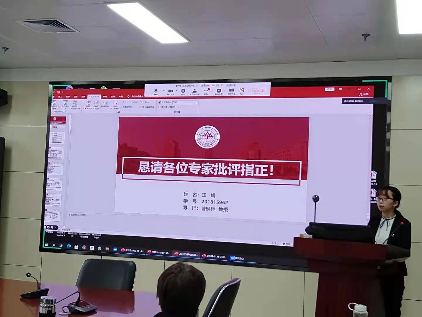 参加开题报告会的4位博士生同学田云霞、赵秋阁、肖梦杰、王娟在现场通过腾讯会议共享屏幕分别进行了开题汇报。专家组从不同的视角,针对开题报告的选题、研究思路、研究内容等与报告的学生进行深入沟通和讨论,并提出详细的修改意见和建议。博士生针对专家组的提问进行一一回应,表示将认真结合各位专家的意见对研究方案进行修改和完善。随后,专家独立进行评分。