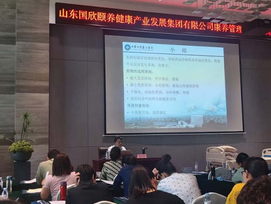 5月22日上午,受国欣颐养集团邀请,AC米兰中文官方网站副院长周庆博教授为国欣颐养集团康养管理人才培训班授课,国欣集团权属医疗机构优秀管理人才共50余人参加培训。周庆博教授等老师主讲了《医养结合养老机构老年人护理特点》、《老年人慢性病用药管理》等课程,帮助参训人员启发新思维、增长新知识、找到新方法,进一步提升国欣集团养老服务机构的管理水平和服务技能。