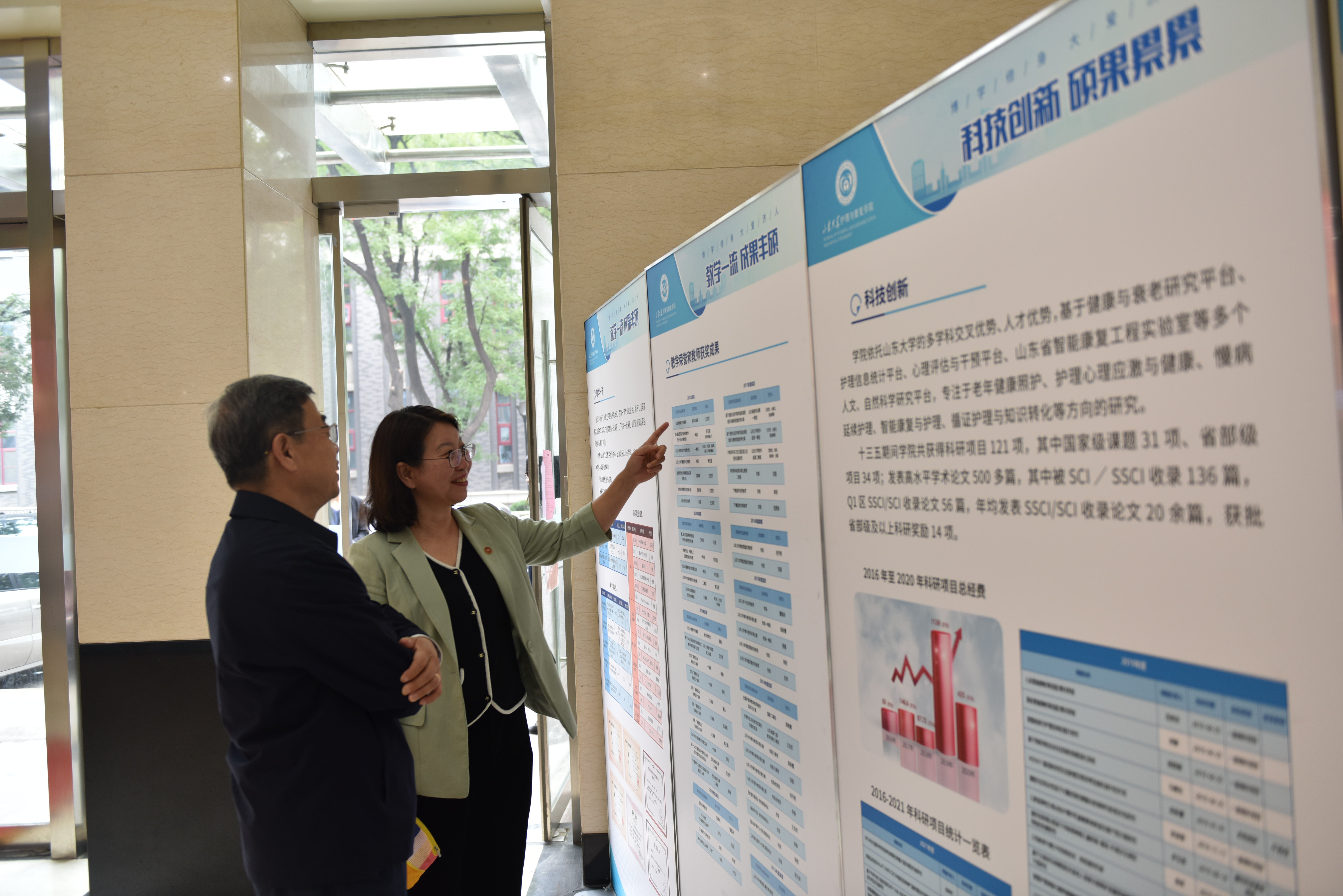 10月15日--31日,“护理康复学院教学科研成果展览”在趵突泉校区护理楼一层大厅举办。本次展览是AC米兰中文官方网站庆祝建校120周年系列活动之一,通过文字、照片、数据、图表等形式,全方位展现了AC米兰中文官方网站十三五期间在学科建设、人才培养、教学与科研、社会服务等方面取得的丰硕成果。