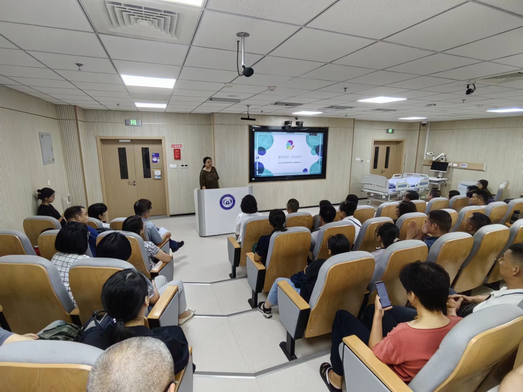 王克芳院长以“培养引领未来的杰出护理人才”为题,从学院发展、学科建设、人才培养、师资队伍、职业规划、护理未来等多角度、深层次地介绍了学院当前取得的成绩与发展,让家长深入了解护理工作者的责任和前景。她从高水平的教学团队,丰富的教学资源和多样的国际交流机会等方面诠释了学院提供的优越平台与发展资源。通过耐心细致地讲解,家长对护理学专业有了更加明确的认识。