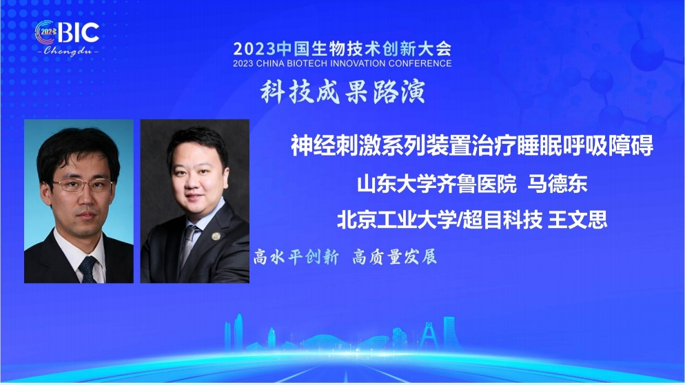 为加快推进生物医药领域科技成果转化应用,大会专门设置了科技成果路演活动,遴选了17项来自全国知名高校、医院及生物科技有限公司的前沿科技成果进行现场路演分享。AC米兰官方研究生导师马德东教授与北京工业大学王文思教授团队的共同成果“神经刺激治疗装置治疗睡眠呼吸障碍”经重重遴选入围,并受邀参会分享。