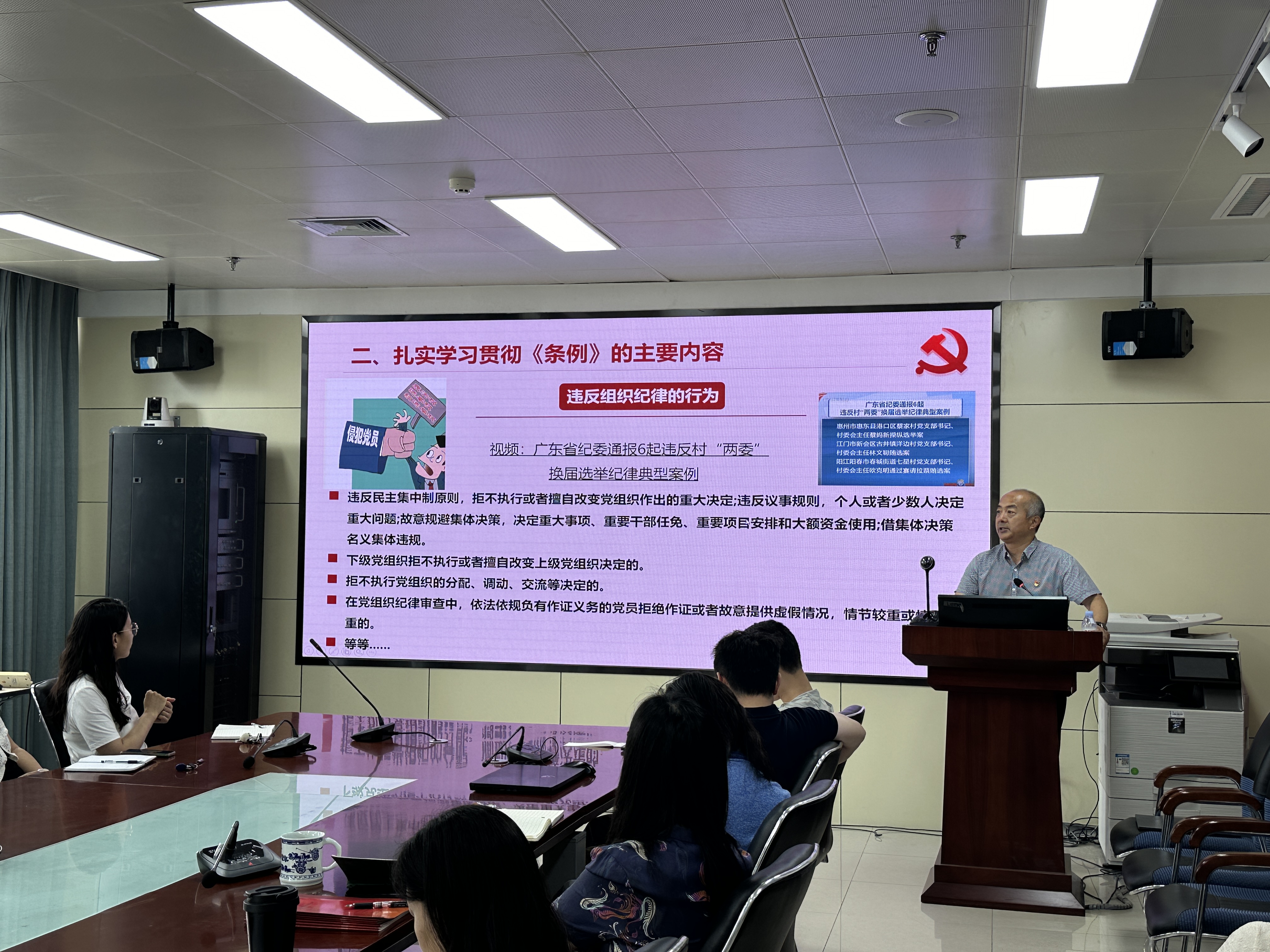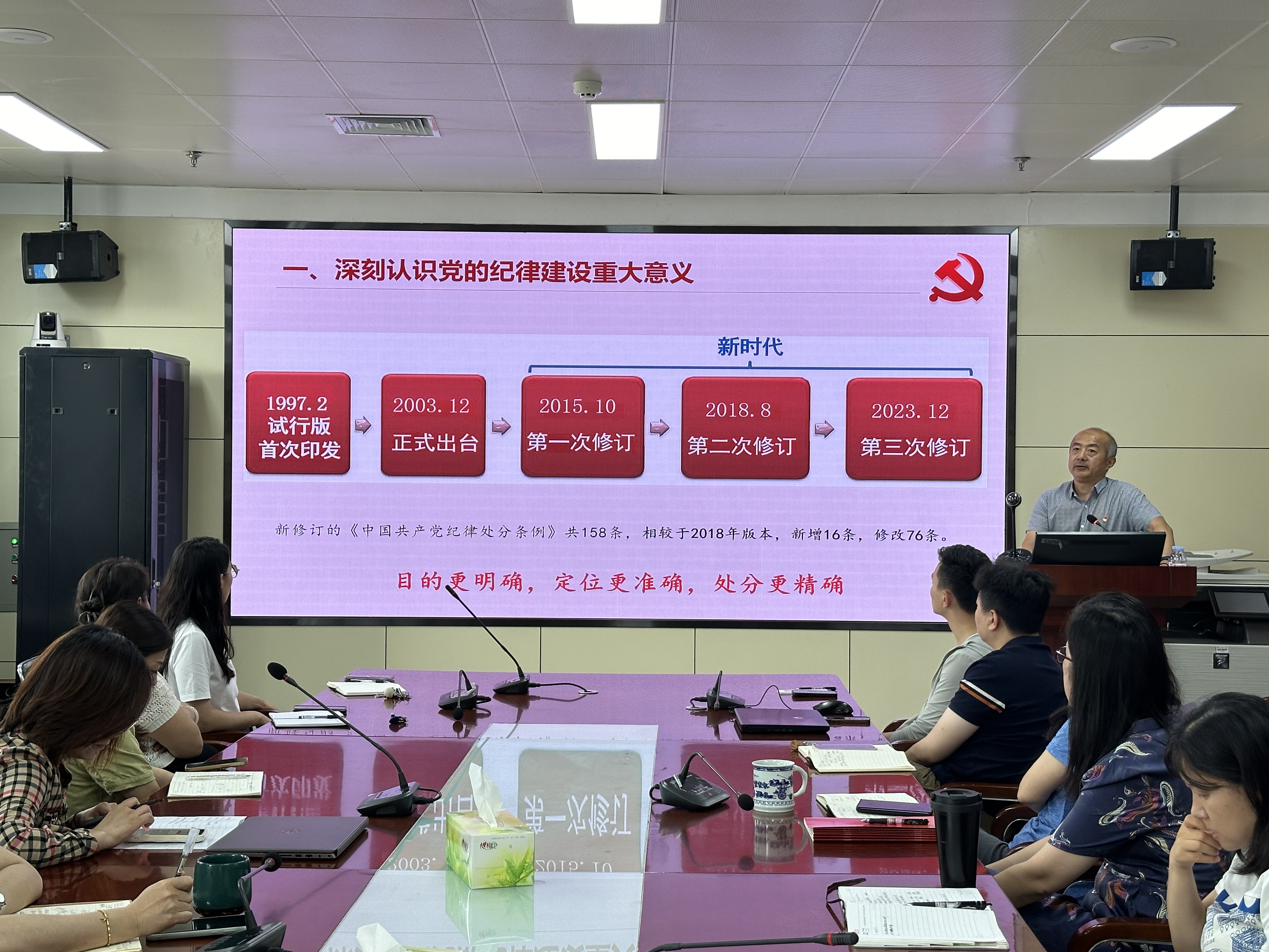 随后,王晓林讲授了党纪学习教育纪律专题党课,通过深入解读《中国共产党纪律处分条例》,结合警示教育相关案例,进一步深刻强调党的纪律建设重大意义,要求学院全体党员学纪知纪明纪守纪,牢固树立纪律意识,以身作则推动党纪学习教育走深走实。