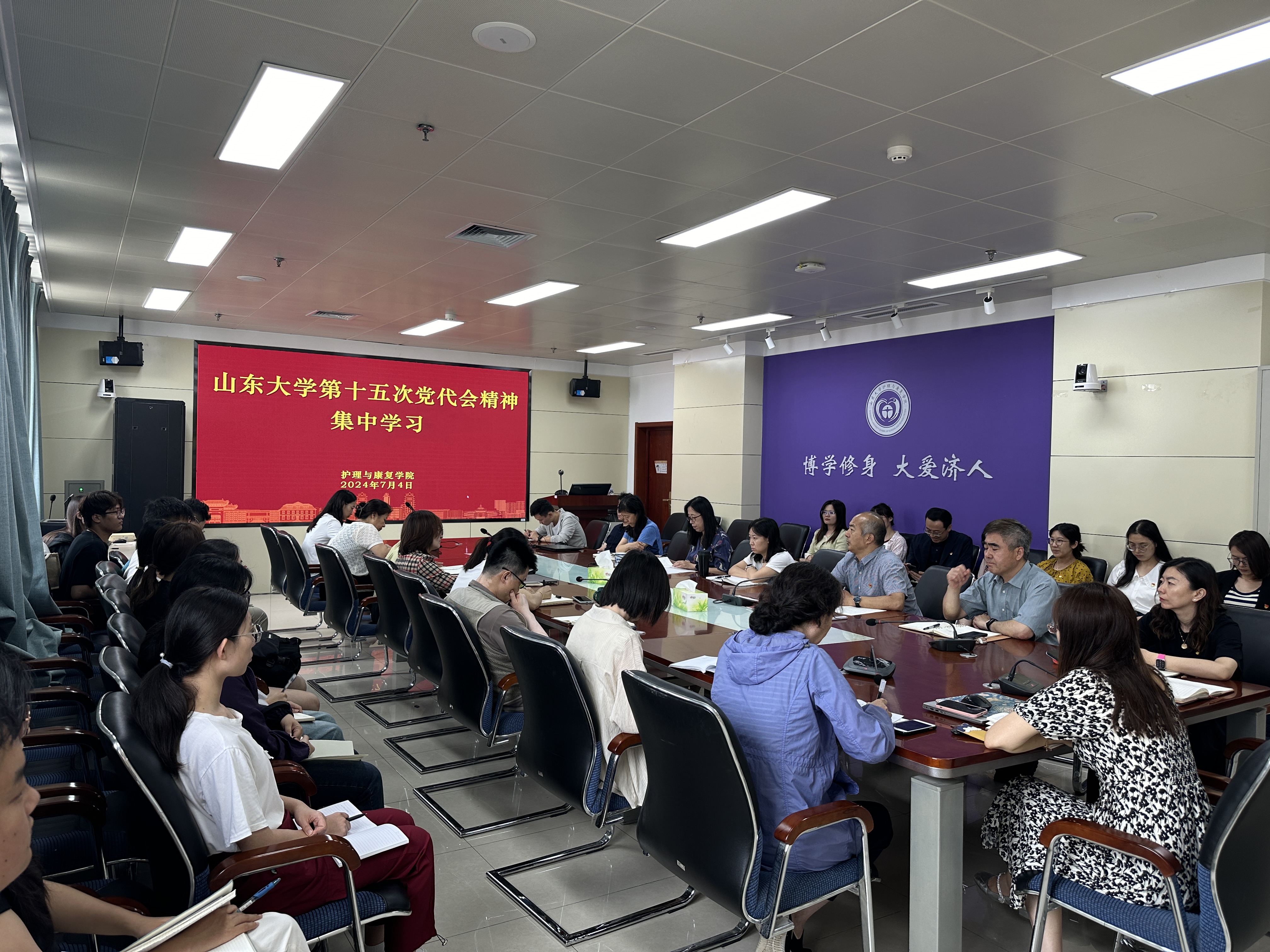 会上,王晓林传达了学校第十五次党代会精神,带领大家学习了解学校第十四次党代会以来的发展历程、建设担当民族复兴大任的世界一流大学“两步走”战略安排、以及今后五年学校事业发展的“一五七九”发展思路和重点任务部署,强调了学校对光大齐鲁医学教育事业的殷切期望。厉萍同志分享了参加党代会的学习收获和心得感悟,重点围绕大会提出的拔尖人才引育和青年人才成长等方面为大家做了解读,并表示将进一步解放思想、敢闯敢创,为学院高质量发展作出应有贡献。与会人员也积极参与讨论,表示备受鼓舞、深感振奋。