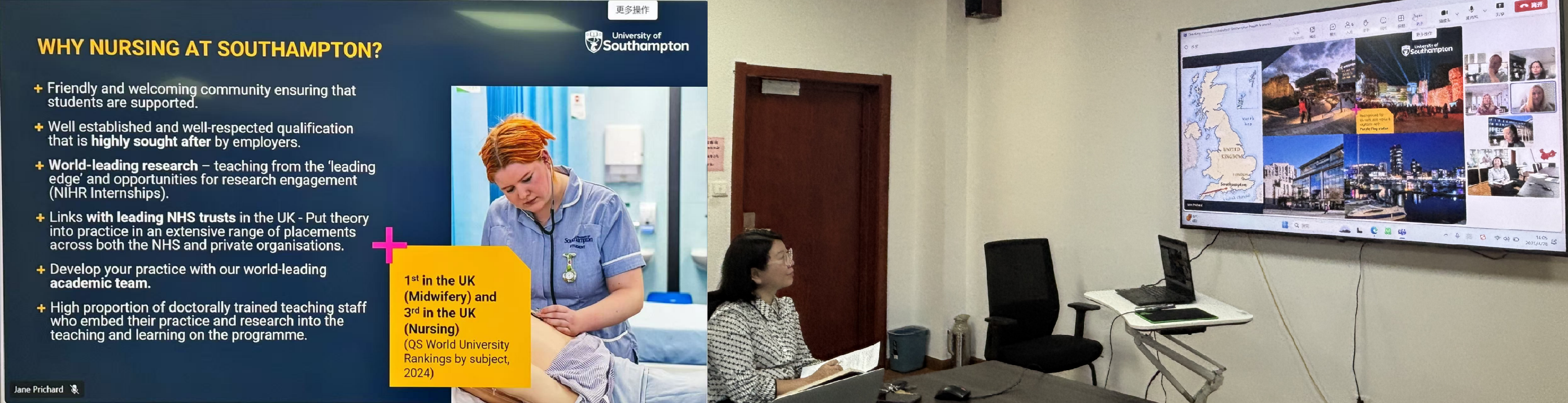 会上,南安普顿大学代表详细介绍了健康科学学院的本科生及研究生培养项目,双方重点围绕本科与硕士联合培养模式展开深入讨论,并就学生录取要求、培养方案及优惠政策等达成初步共识。此外,双方还就师生互访、联合举办学术活动等合作事项交换意见。会议取得积极成果,双方一致同意将继续推进具体合作事宜的落实。