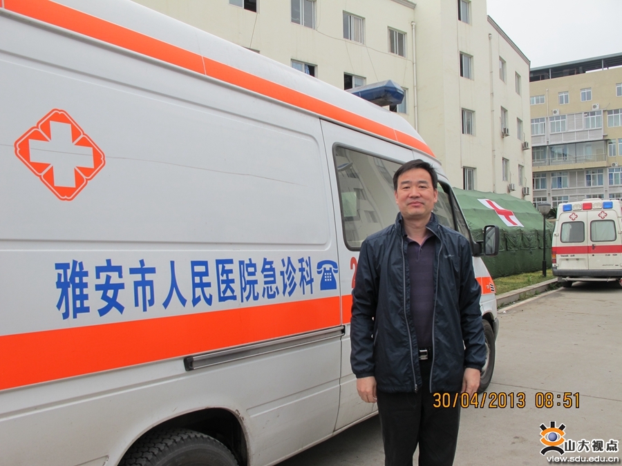 2013年4月20日,四川省雅安市发生地震。27日,时任卫生计生委副主任马晓伟同志带领工作组,赴现场考察医疗卫生救援工作,要求继续全力救治伤员,并全面开展震后伤员康复工作,降低致残率。卫计委医政司当即决定,抽调两名康复医学专家前往地震灾区开展康复筛查及指导工作,岳寿伟教授就是其中之一,也是山东省派往雅安震区的首位医学专家。