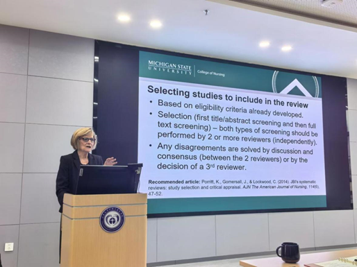 在为期三天的课程中,Robbins教授深入浅出地介绍了系统综述、转化科学和实施科学的核心概念、内涵及研究方法。她以自身丰富的研究经历为案例,详细阐述了系统综述的研究步骤,转化科学中的关键阶段,以及实施科学中常用的综合框架。通过循序渐进的教学方式,国内外的本科生、研究生们得以全面而深入地理解这些复杂的概念。