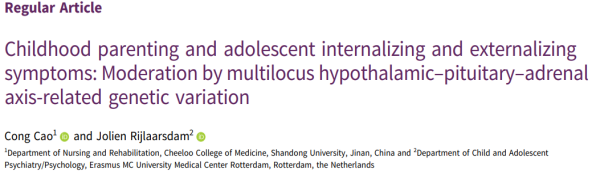《Childhood parenting and adolescent internalizing and externalizing symptoms: Moderation by multilocus hypothalamic-pituitary-adrenal axis-related genetic variation》